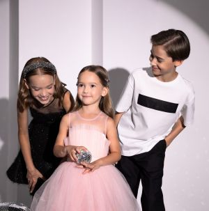 Gulliver Girls Fitted Black Dress with Textured and Mesh - Rose Quartz
