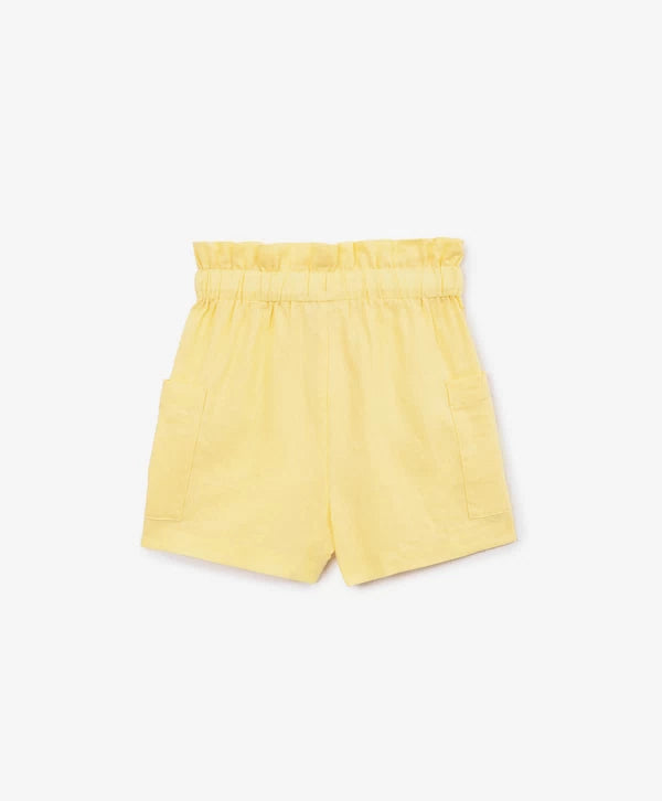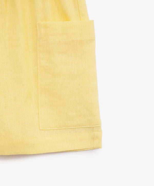 These girls’ shorts by Gulliver are crafted from a breathable blend of linen and cotton, making them perfect for warm-weather days. The lightweight natural fabric ensures comfort, while the cheerful yellow color adds a fresh seasonal touch. Designed with a comfortable fit, these shorts are ideal for everyday wear, vacations, and summer outings.