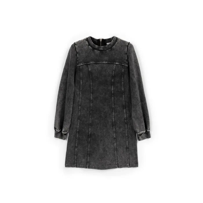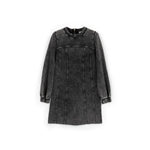 This gray A-line dress for girls embraces the vintage trend with a stylish washed effect and textured seams. Crafted from soft French terry cotton, it provides warmth while maintaining its shape. The voluminous long sleeves with elastic cuffs add a subtle romantic touch, while the back zipper ensures easy wear. Perfect for creating a bold, modern look when paired with a crossbody bag and chunky boots.