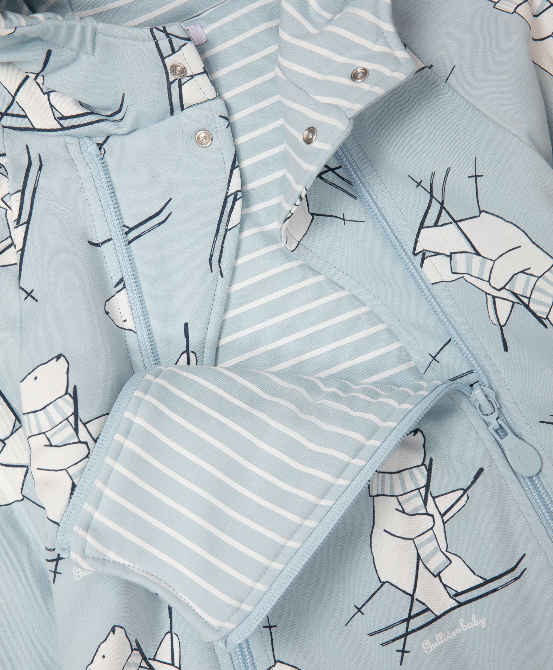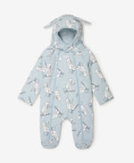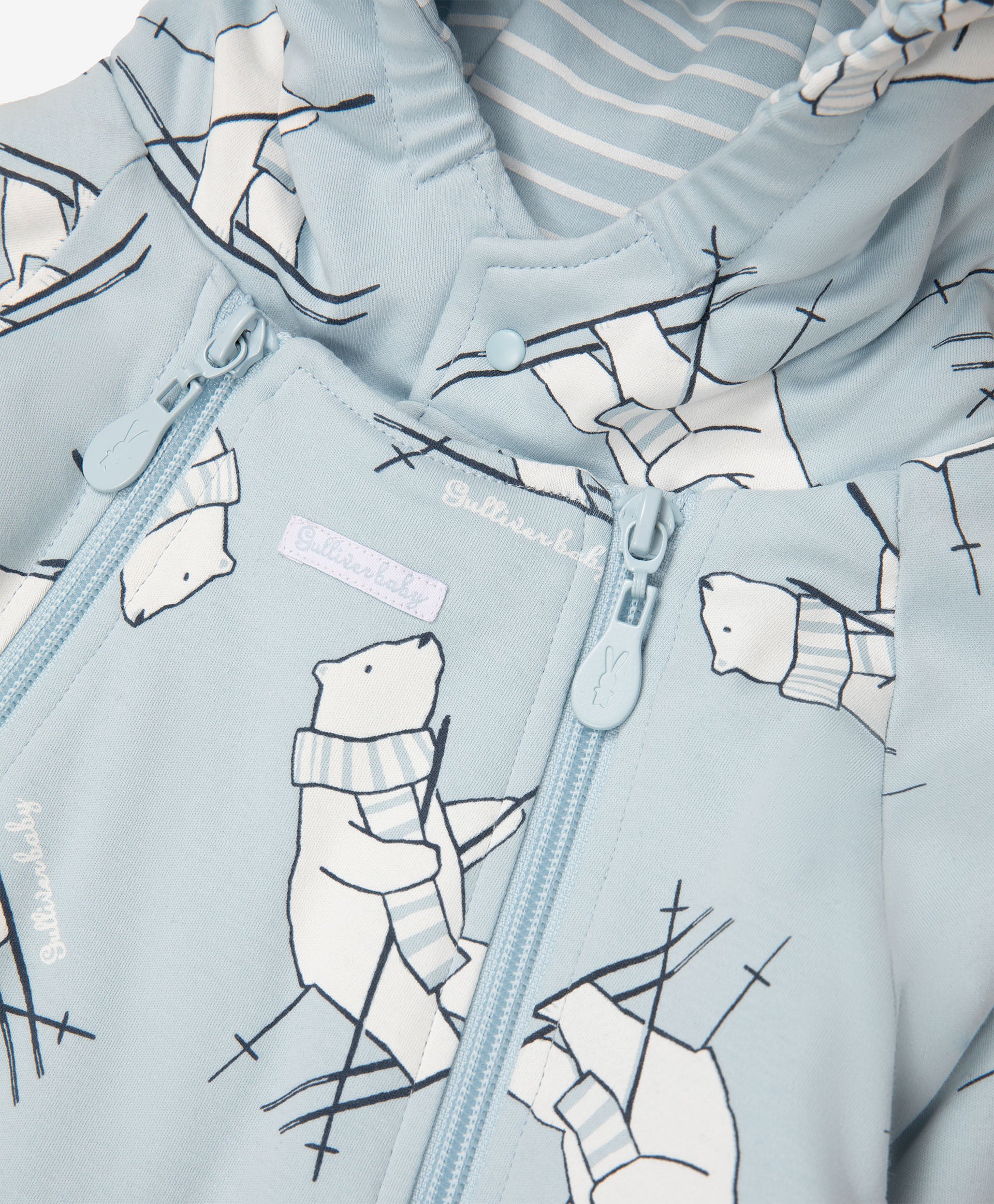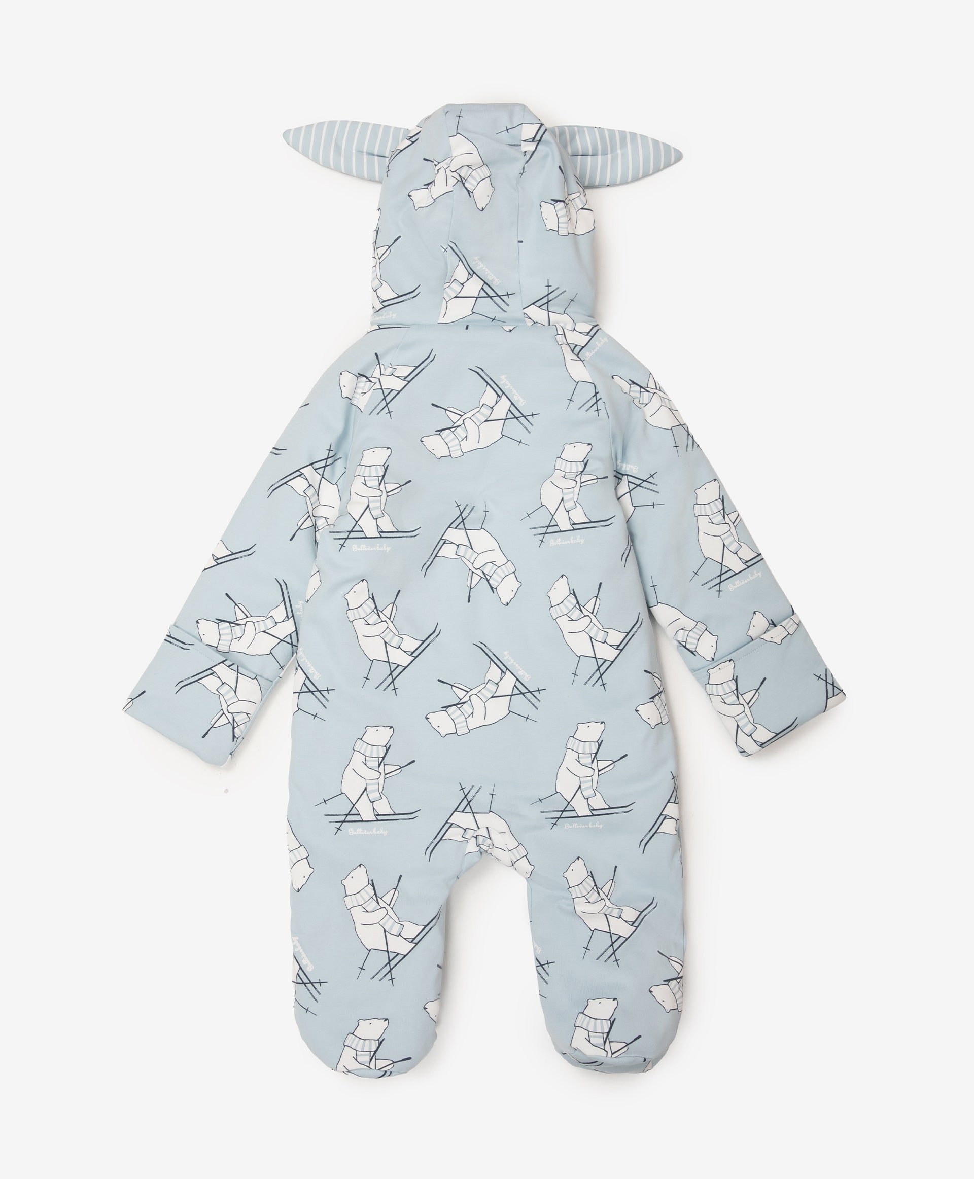 Charming and cozy, this soft quilted cotton jumpsuit for boys is designed for warmth and comfort during cool days. The hood is decorated with cute ears, giving the piece a playful look. Made from breathable, hypoallergenic cotton with light insulation, it provides excellent comfort for outdoor walks or naps. The front zipper allows for easy dressing, while the gentle inner lining ensures softness against delicate skin. A perfect everyday choice for babies in the fall and winter seasons.