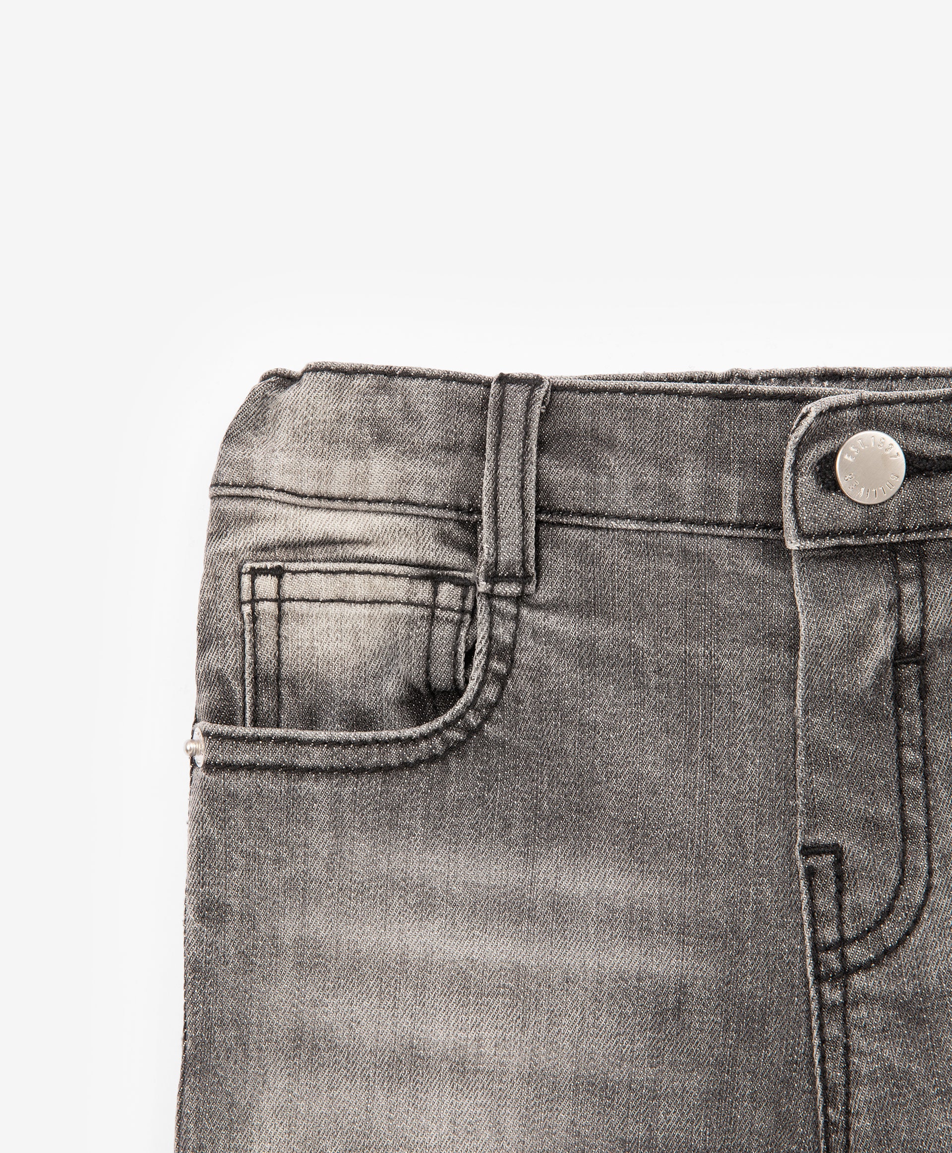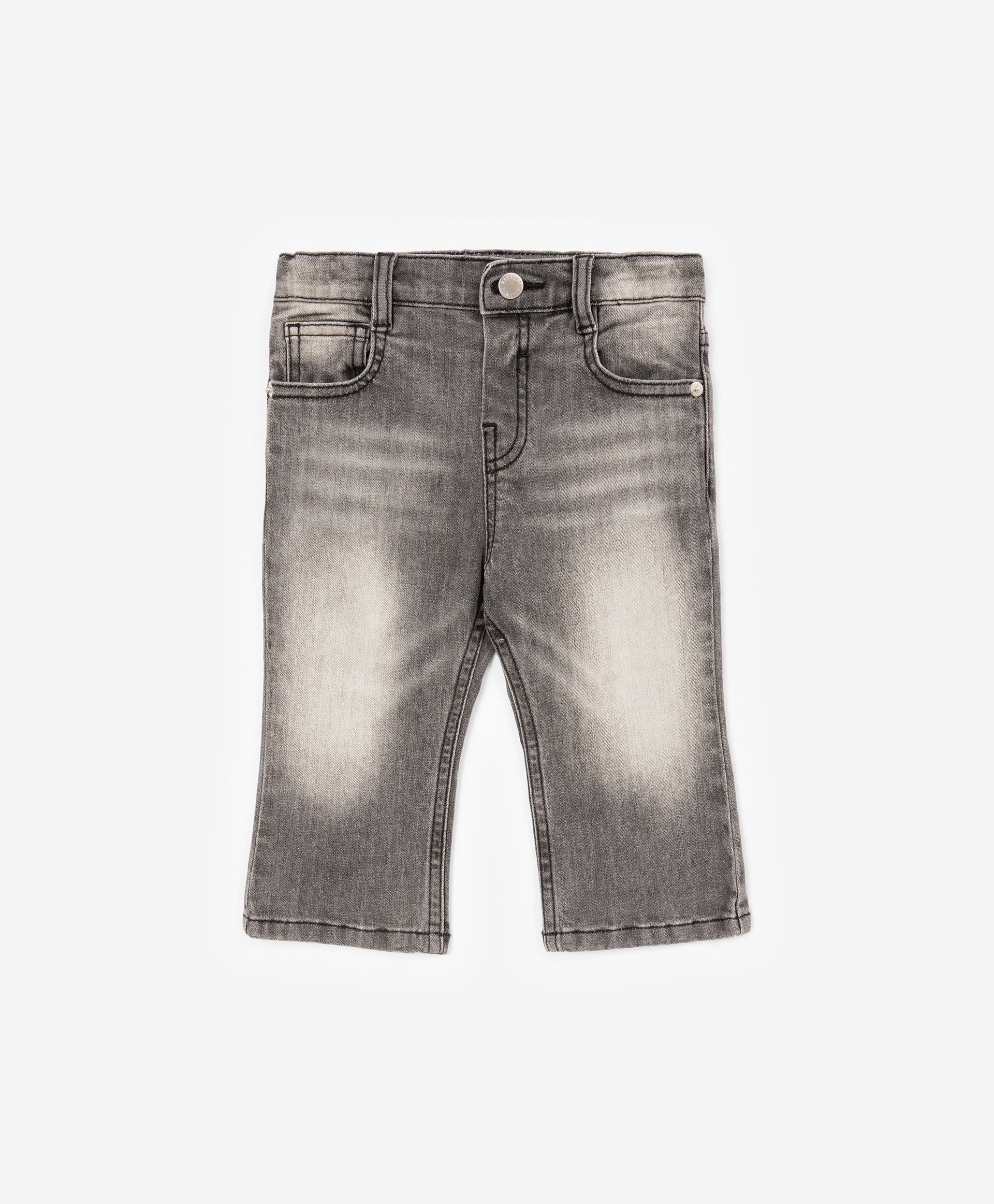 These gray straight-cut jeans from Gulliver Baby are a stylish and versatile addition to a little girl’s wardrobe. Crafted from soft denim with subtle distressed details and wash effects, they offer a modern, trendy look. The fabric contains 2% elastane for comfort and ease of movement. Featuring five functional pockets and a classic zip fastening, these jeans are perfect for everyday wear and pair effortlessly with tops, sweaters, or jackets from the Snow Leopard collection.