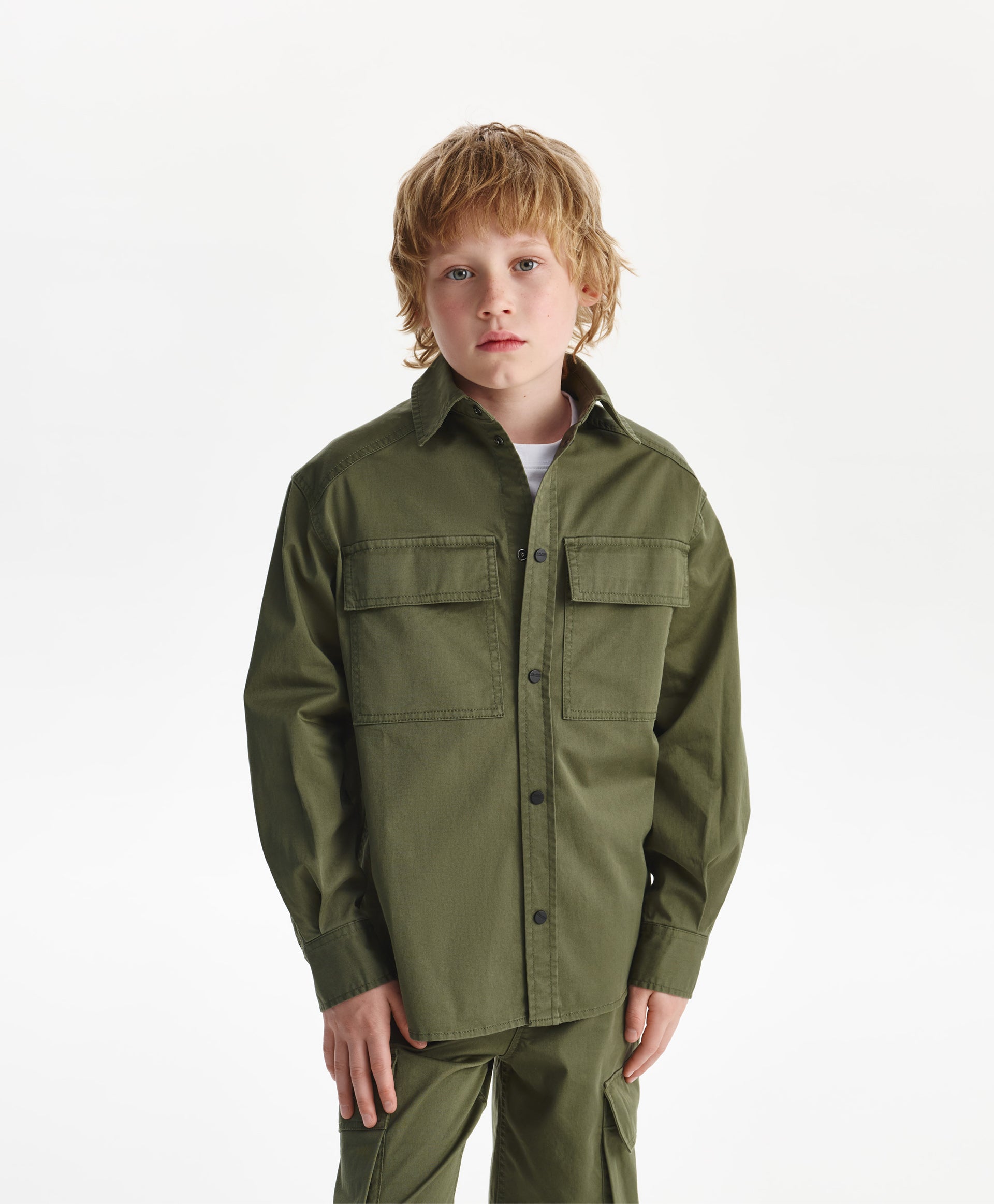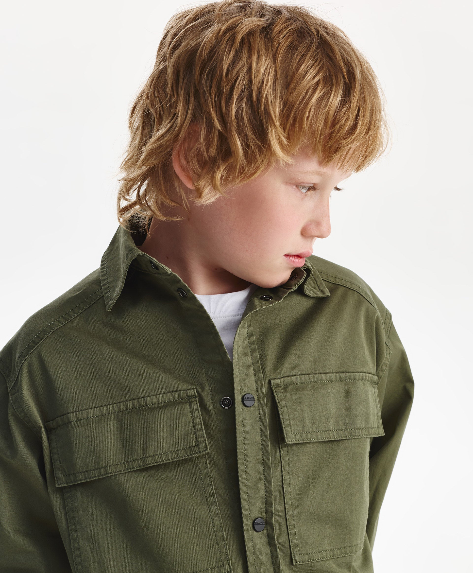 A classic khaki long sleeve shirt for boys from Gulliver, made from soft cotton blend for comfort and ease of movement. Features a button-down front, collar, and regular fit, making it perfect for school, casual outings, or layering under sweaters and jackets. The durable fabric retains its shape, color, and softness after multiple washes. Suitable for spring and autumn wear.