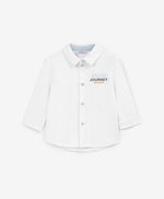 Classic white long sleeve shirt designed for baby boys. Made from soft, breathable cotton, it keeps your little one comfortable all day. The timeless design features a gentle collar and easy-to-use buttons, making it perfect for special occasions or everyday wear. Soft fabric ensures delicate skin stays irritation-free, while the versatile style pairs easily with trousers or jeans.