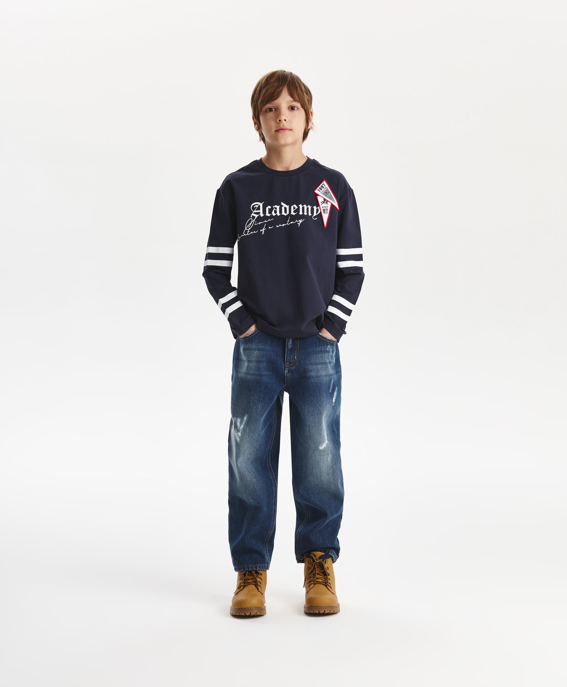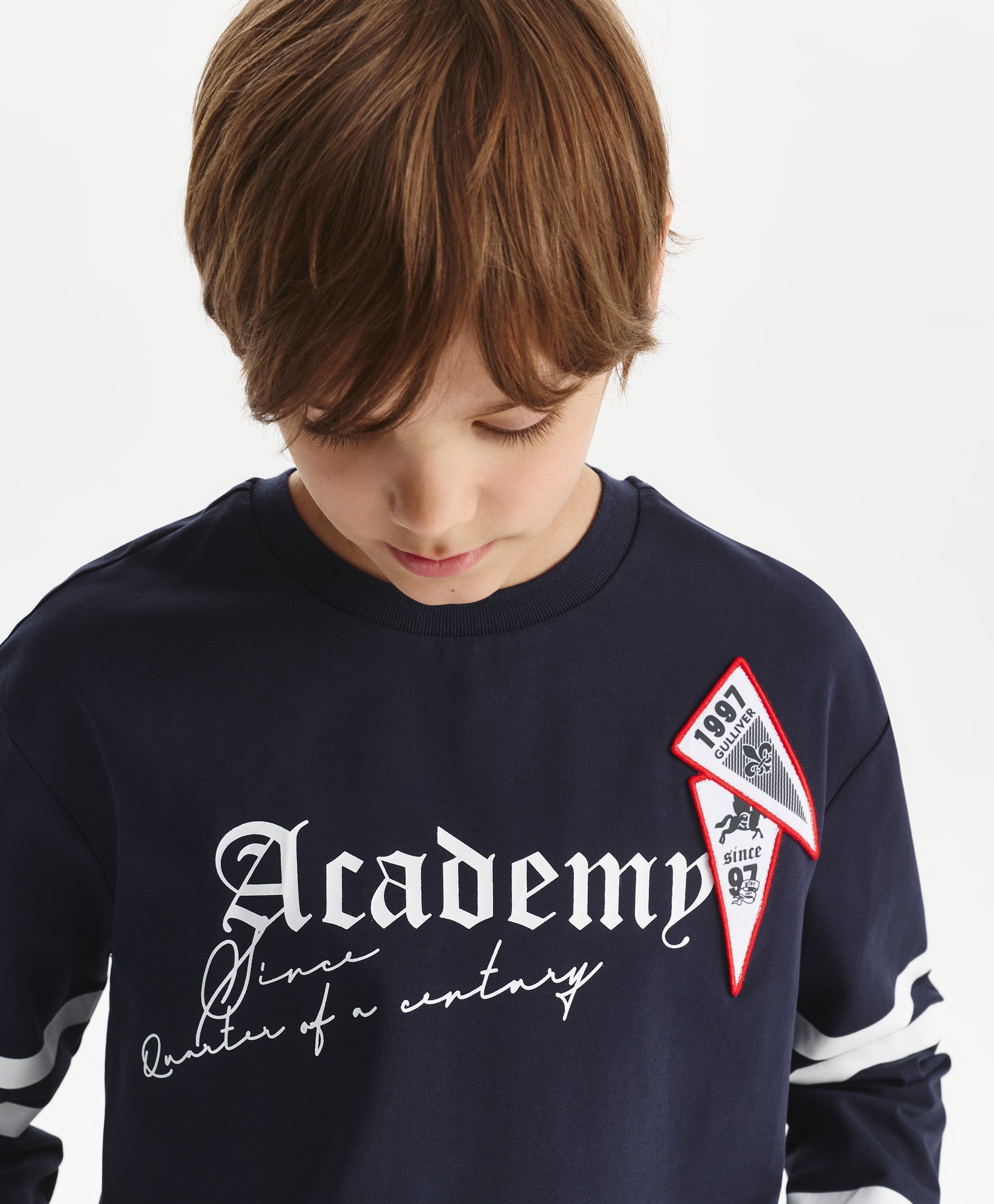 Comfortable and stylish boys’ long sleeve top from Gulliver in a relaxed loose fit. Made of soft cotton, it features colorful prints and embroidered patches for a playful, trendy look. The breathable fabric ensures comfort throughout the day, making it perfect for school, casual outings, or sports activities. Easy to pair with jeans, joggers, or shorts. Durable, machine-washable, and designed for all-day wear.