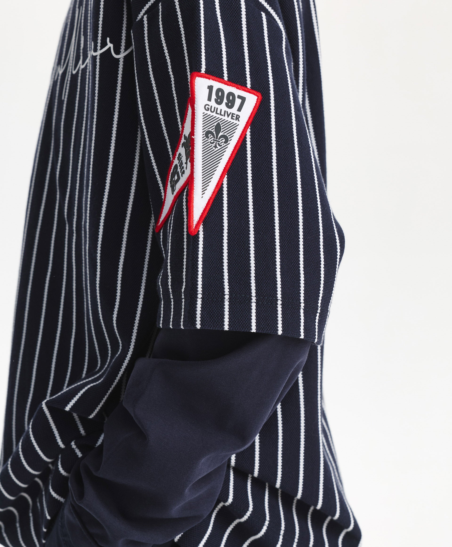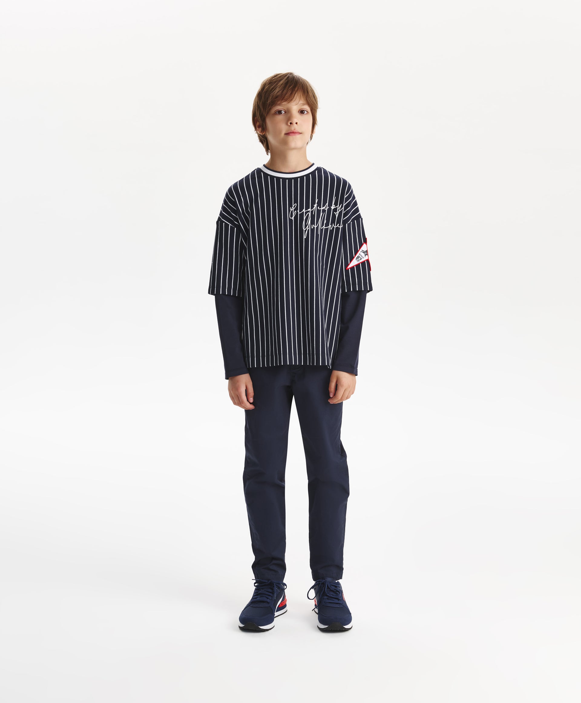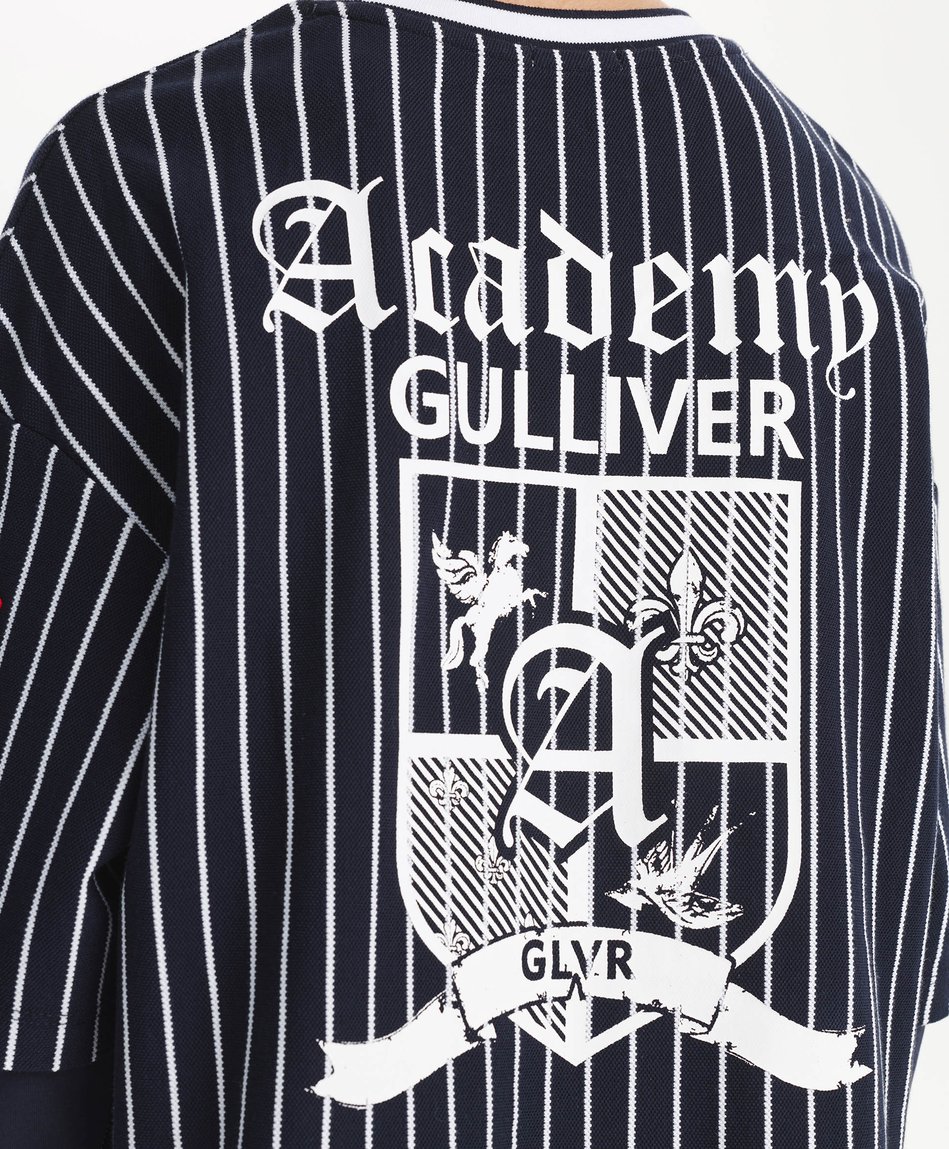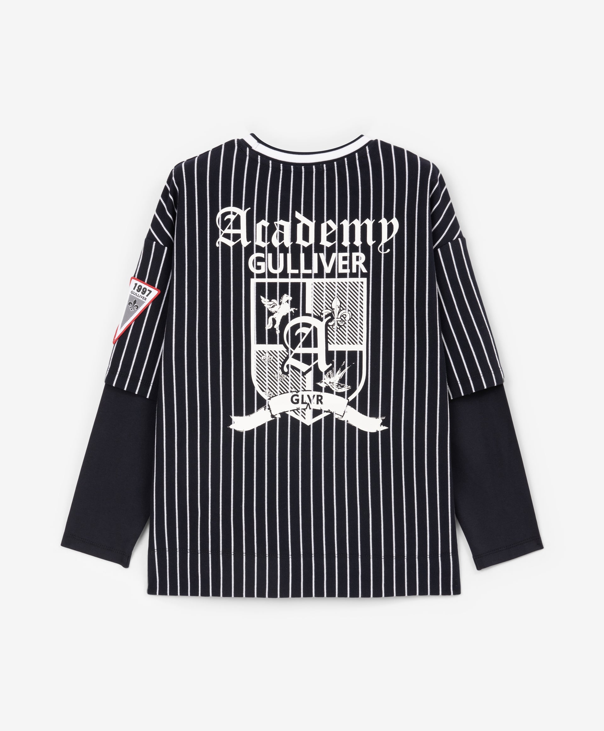 A trendy oversized long sleeve top for boys from Gulliver, featuring blue stripes for a stylish casual look. Made from soft cotton blend with a touch of elastane for comfort and stretch. The relaxed oversized fit allows freedom of movement, making it ideal for school, casual outings, or layering over T-shirts. Durable fabric maintains its color, shape, and softness after multiple washes. Perfect for spring and autumn wear.