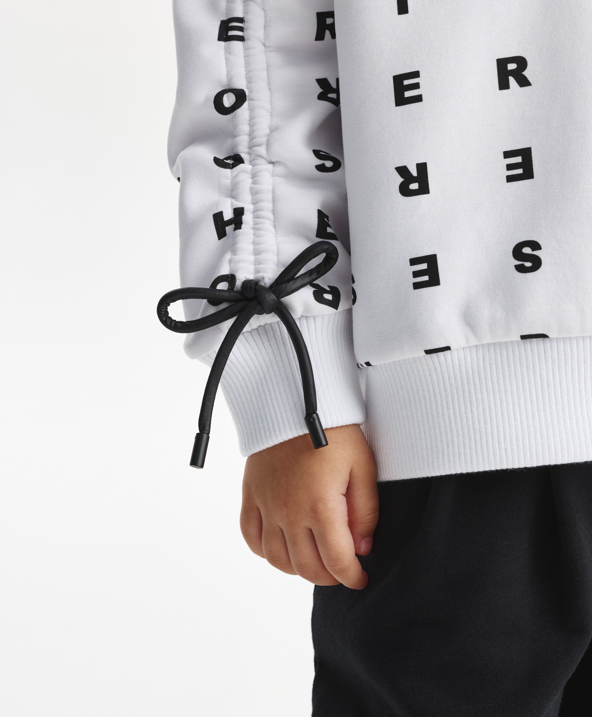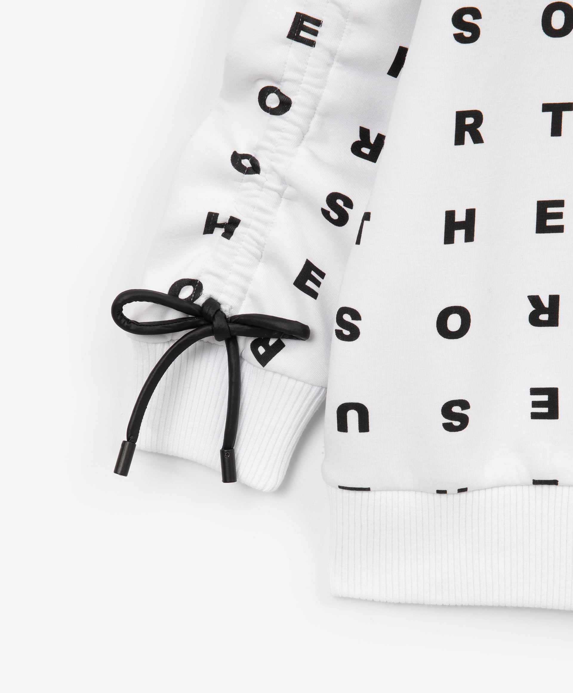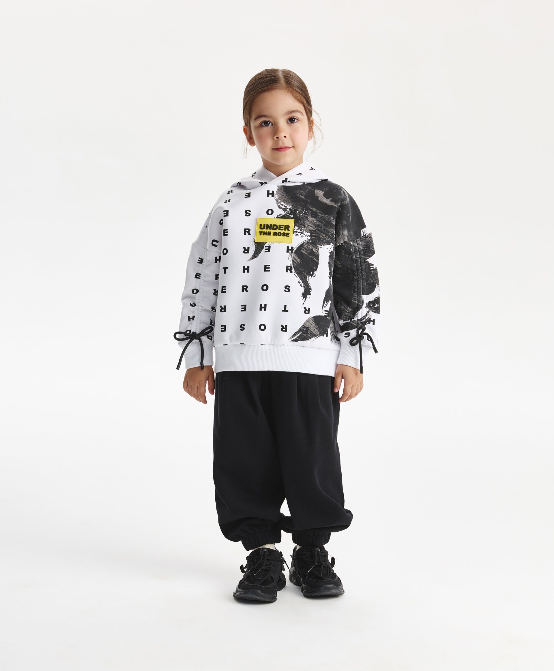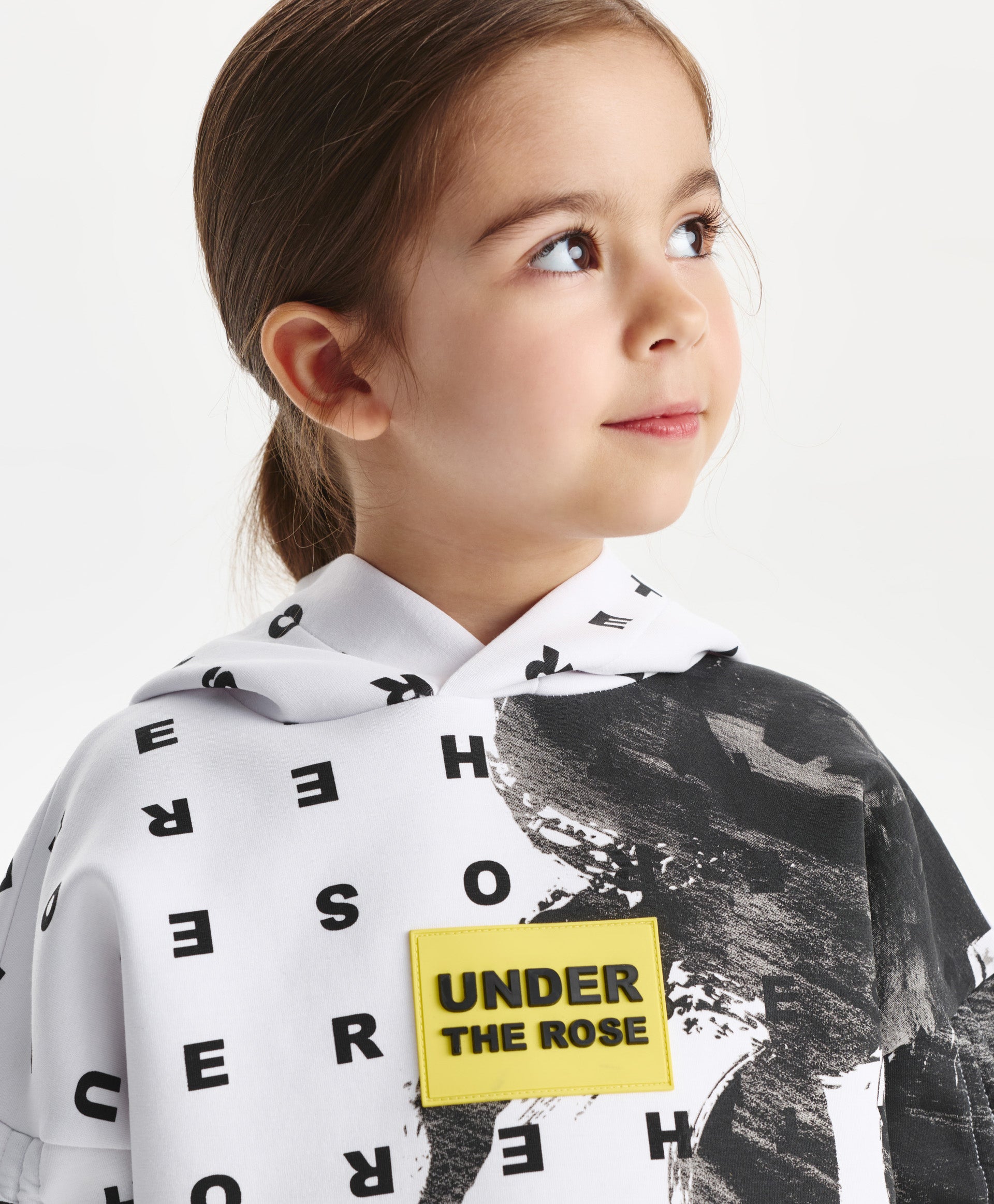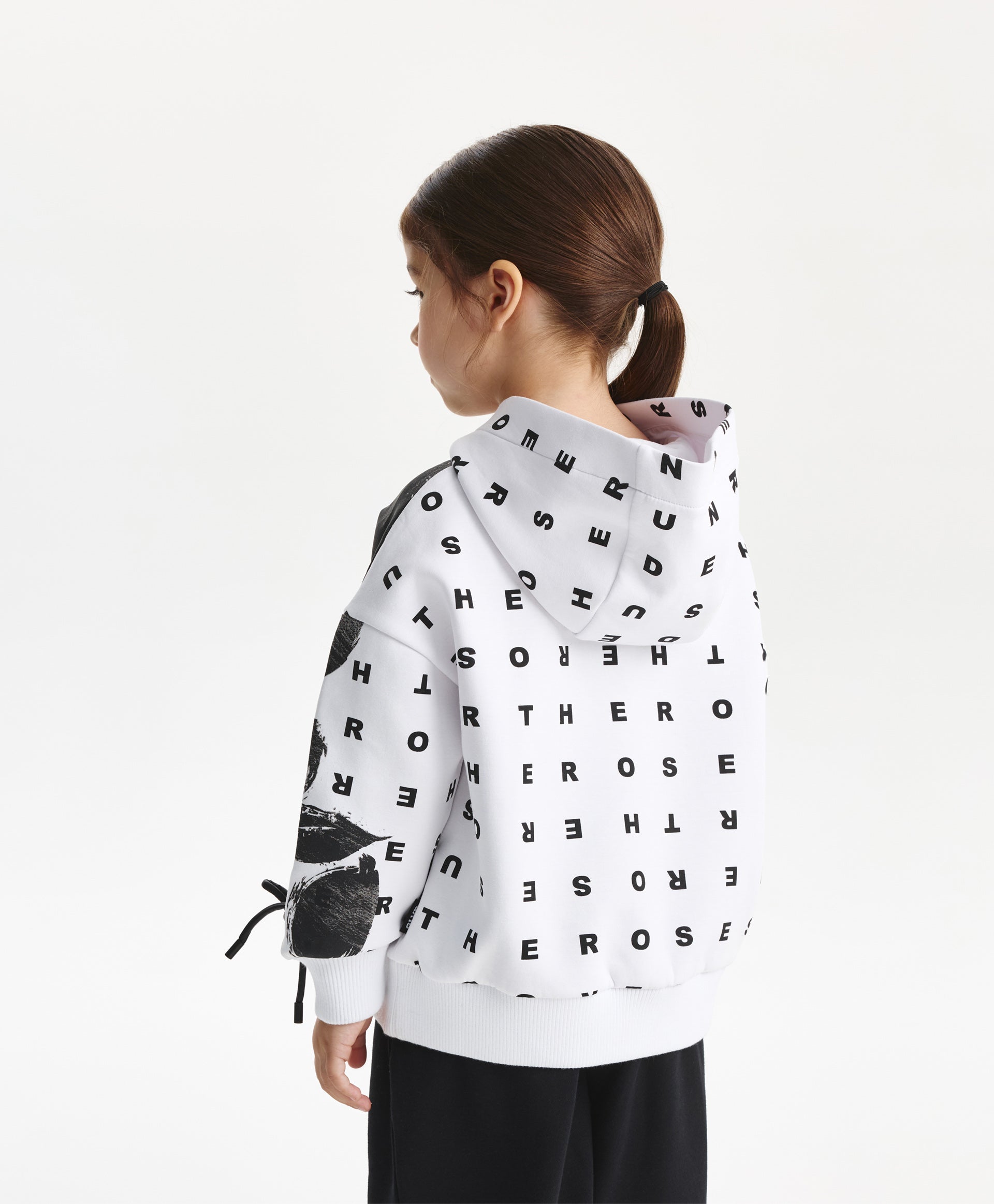 This white hoodie for girls from the Gulliver Baccarat collection blends comfort with expressive style. Made from soft interlock cotton with polyester and spandex, it features a relaxed oversized silhouette for a modern fit. The bright, contrasting print combines bold lettering with an asymmetric floral motif for a dynamic, fashionable look. Vertical drawstrings on the sleeves add a unique touch and allow easy adjustment of sleeve length and gathering. Ideal for the Autumn/Winter 2025–2026 season, this hoodie pairs perfectly with jeans or joggers for everyday wear.