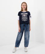 Elevate your child's wardrobe with this blue jeans designed for girls in the junior age group. Crafted for comfort and style, it's made from high-quality materials: 100% cotton.