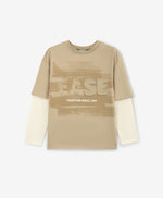 Elevate your child's wardrobe with this beige long sleeve t-shirt designed for boys in the junior age group. Crafted for comfort and style, it's made from high-quality materials: main fabric: 100% cotton; secondary fabric: 95% cotton, 5% elastane.