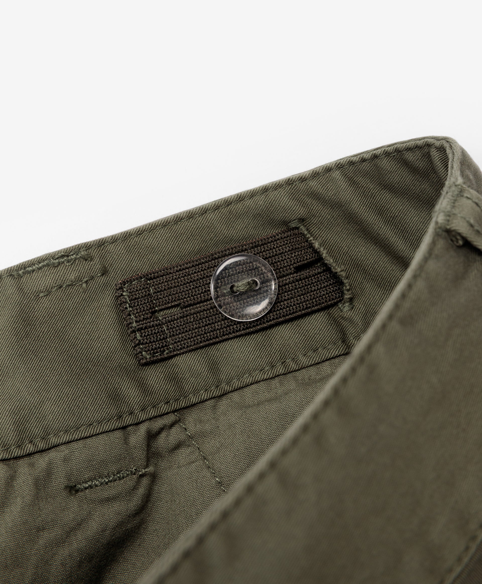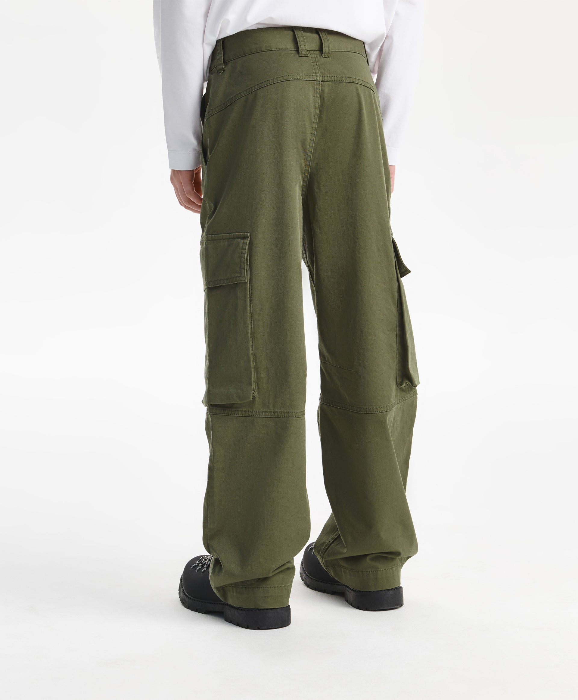 Design: Cargo pockets, straight-leg pants, button and zip closure