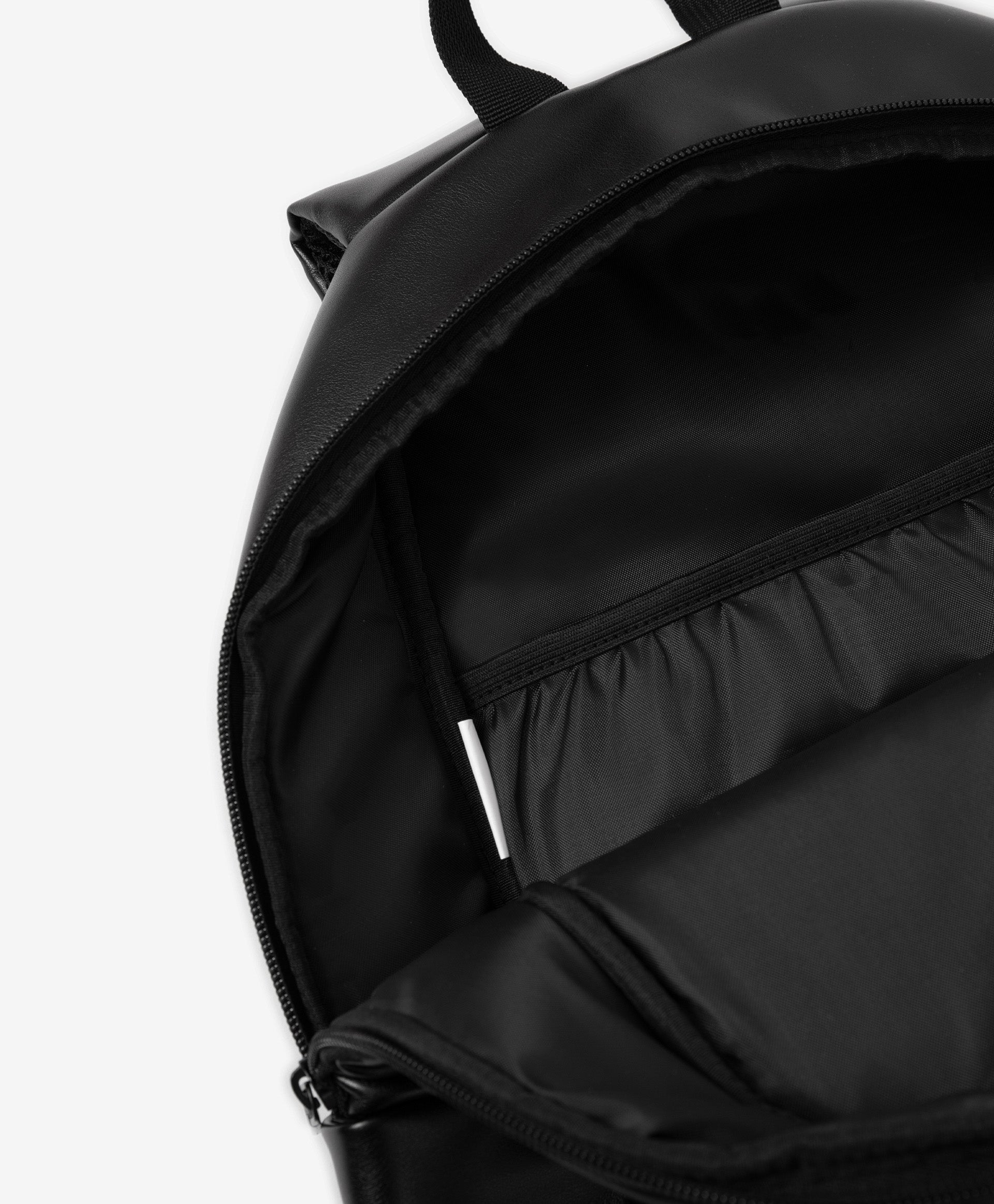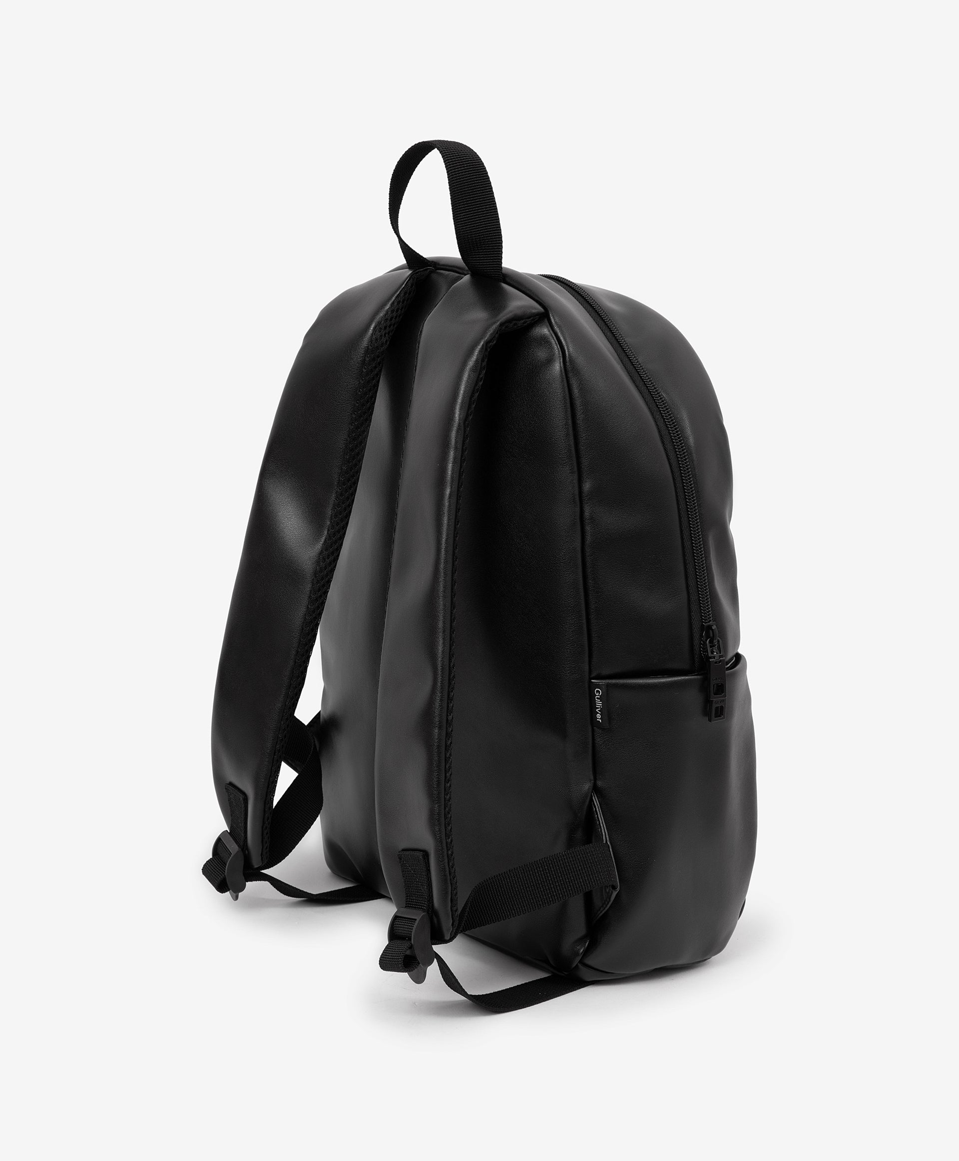 This black glossy soft backpack from Gulliver combines style and practicality. The water-resistant polyester exterior and reinforced structure keep it functional while remaining lightweight. It offers ample storage with a main compartment, small interior pocket, and external zip pocket, making it perfect for daily use.