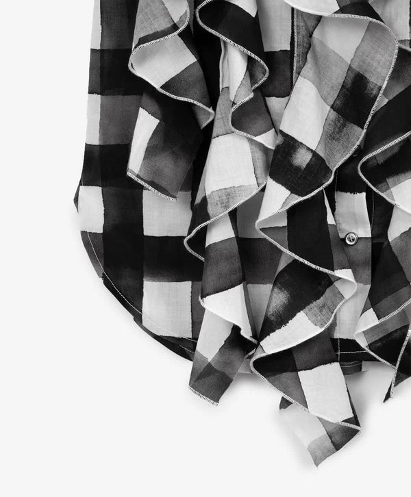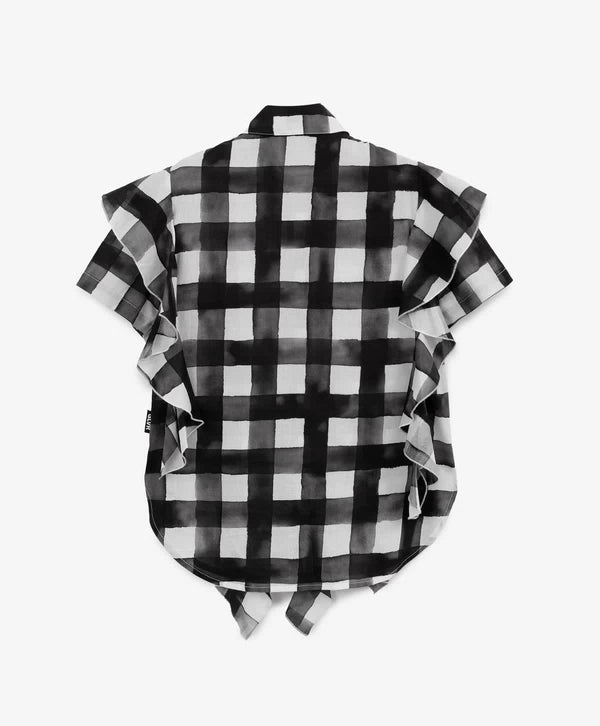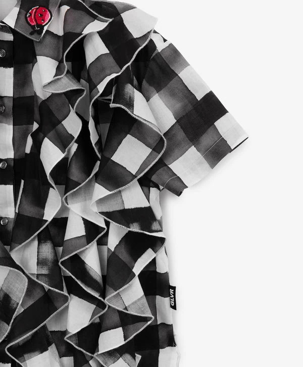 This multicolor checkered dress for girls features short sleeves and voluminous ruffle details, adding playfulness and elegance. Made from soft, durable fabric, it provides comfort while keeping its shape. Ideal for special occasions or stylish everyday wear, it pairs beautifully with tights or shoes to complete the look.