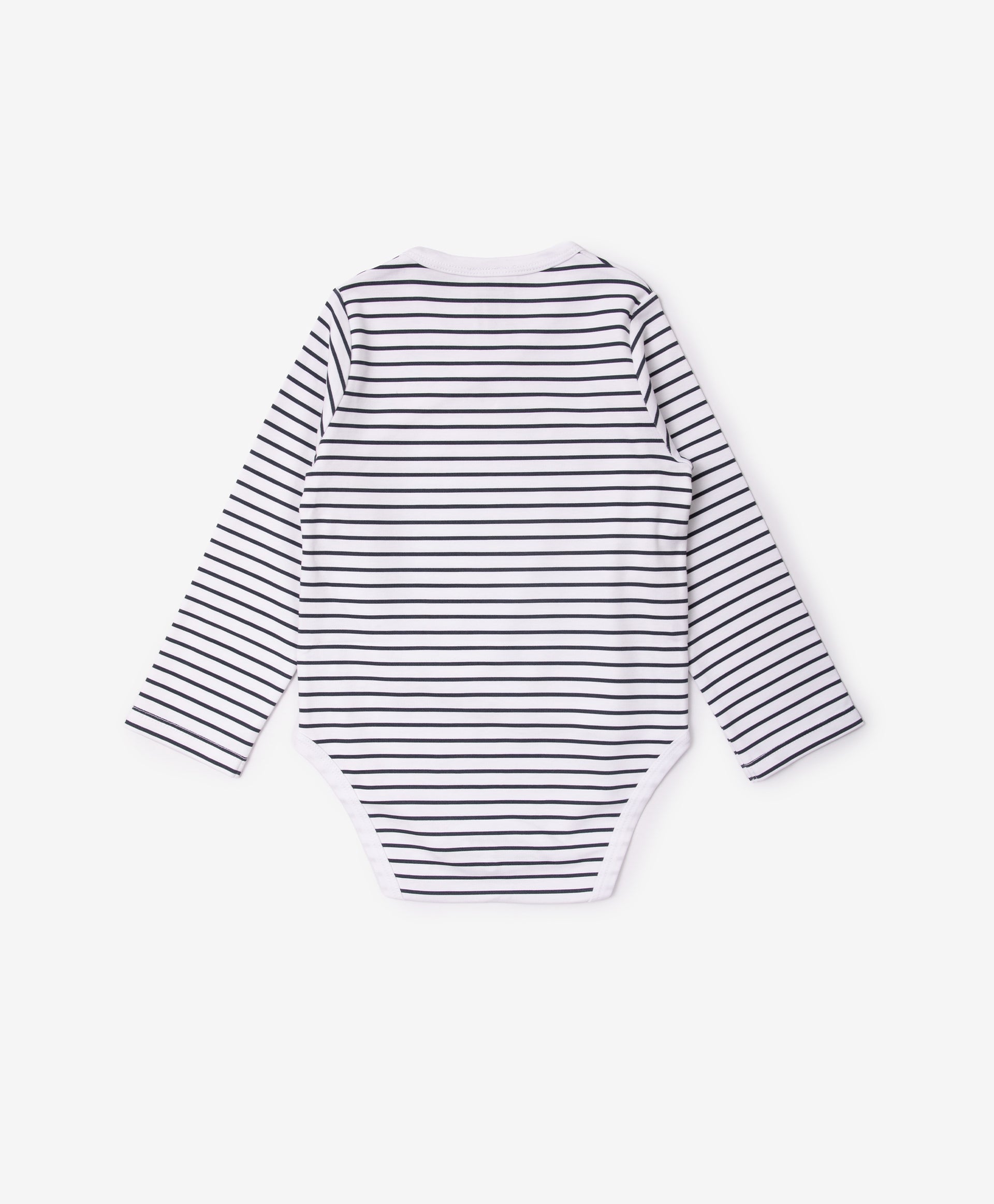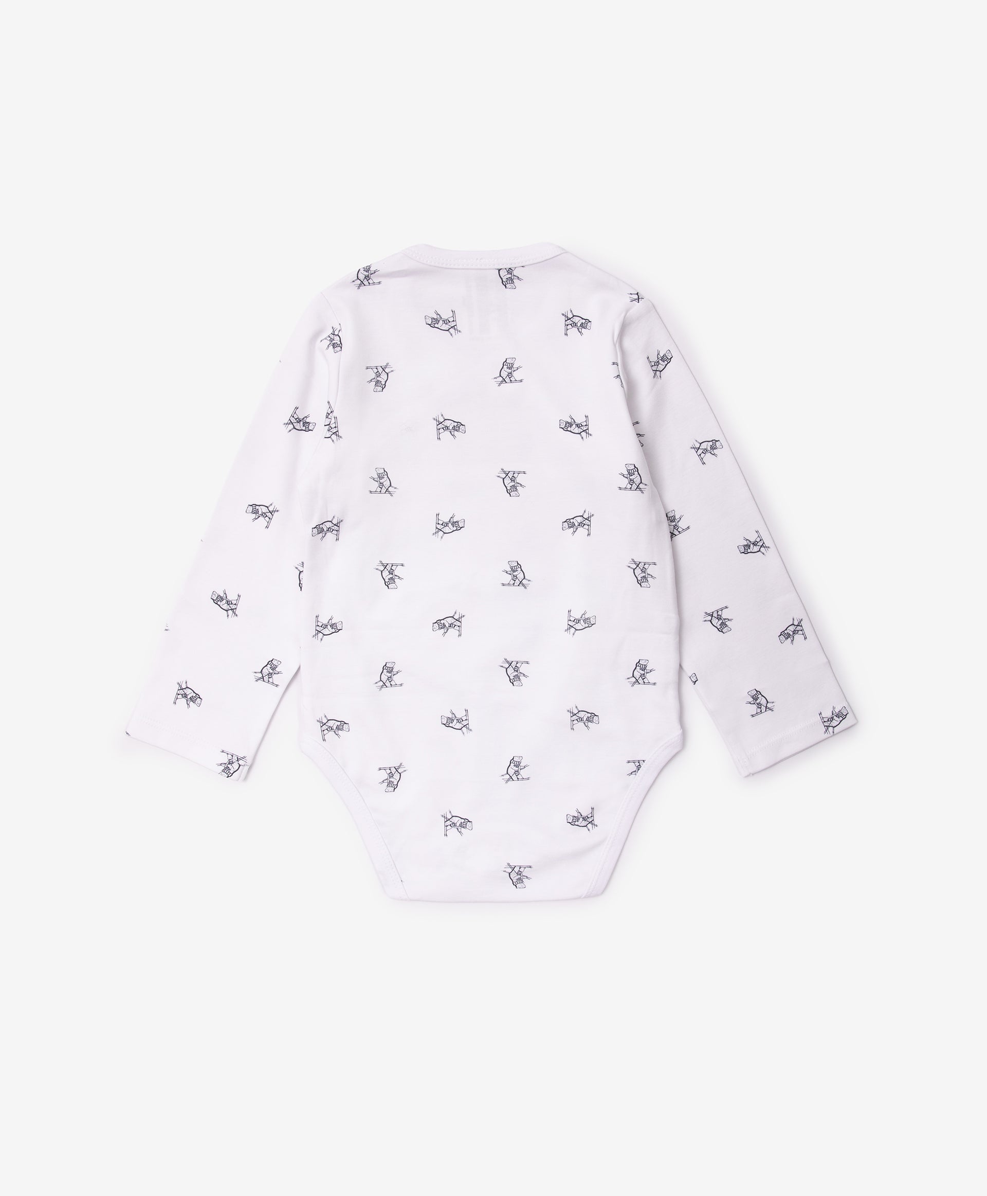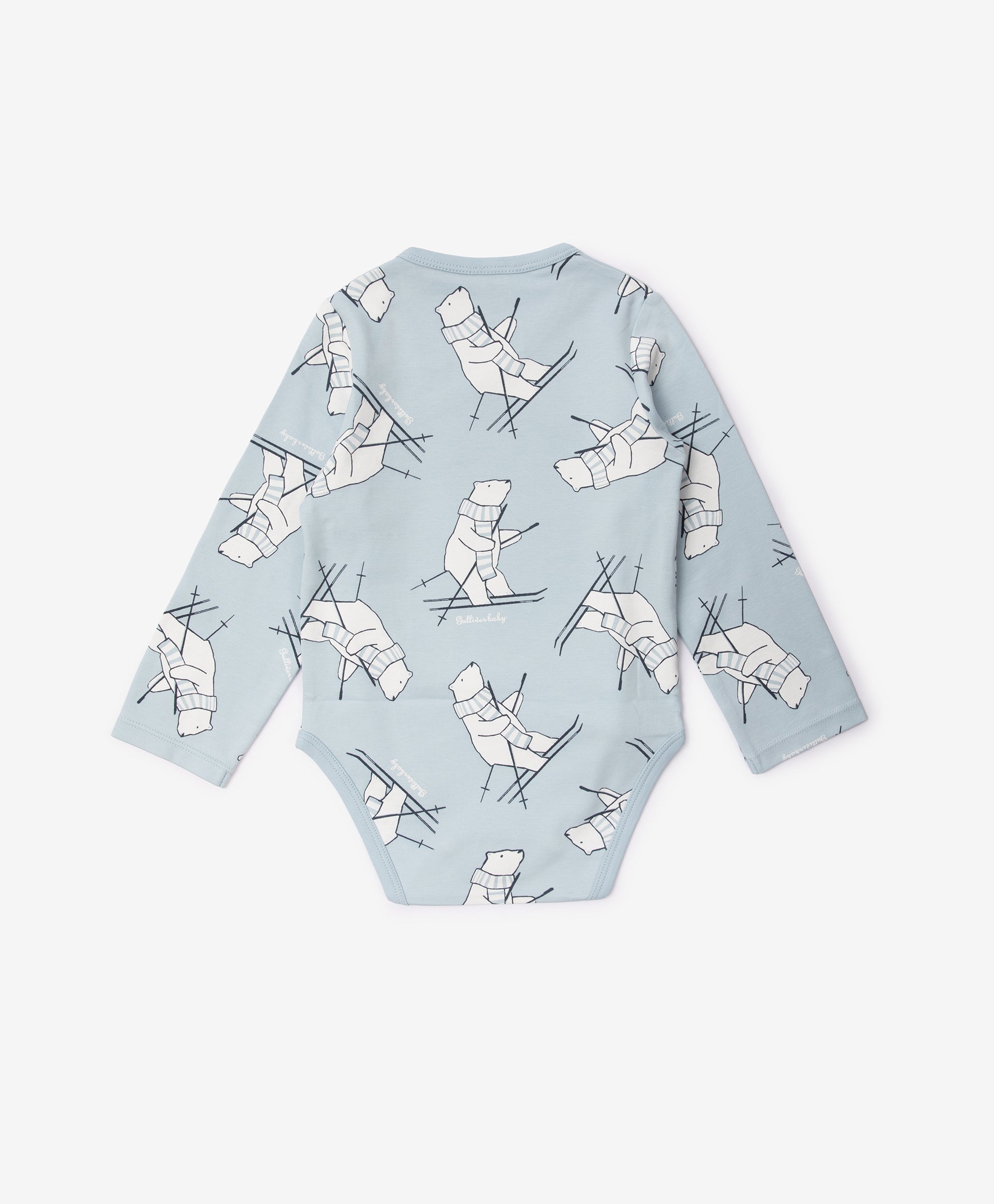 This set of three wrap-style long sleeve bodysuits for boys is designed for comfort, practicality, and gentle care. Made from soft, breathable natural cotton, they ensure maximum comfort and protect delicate skin. The convenient wrap design with snap fasteners makes dressing and changing easy, while the stretchy fabric allows full freedom of movement. Each bodysuit features a unique soft color or print, perfect for everyday wear and layering during the cooler months.