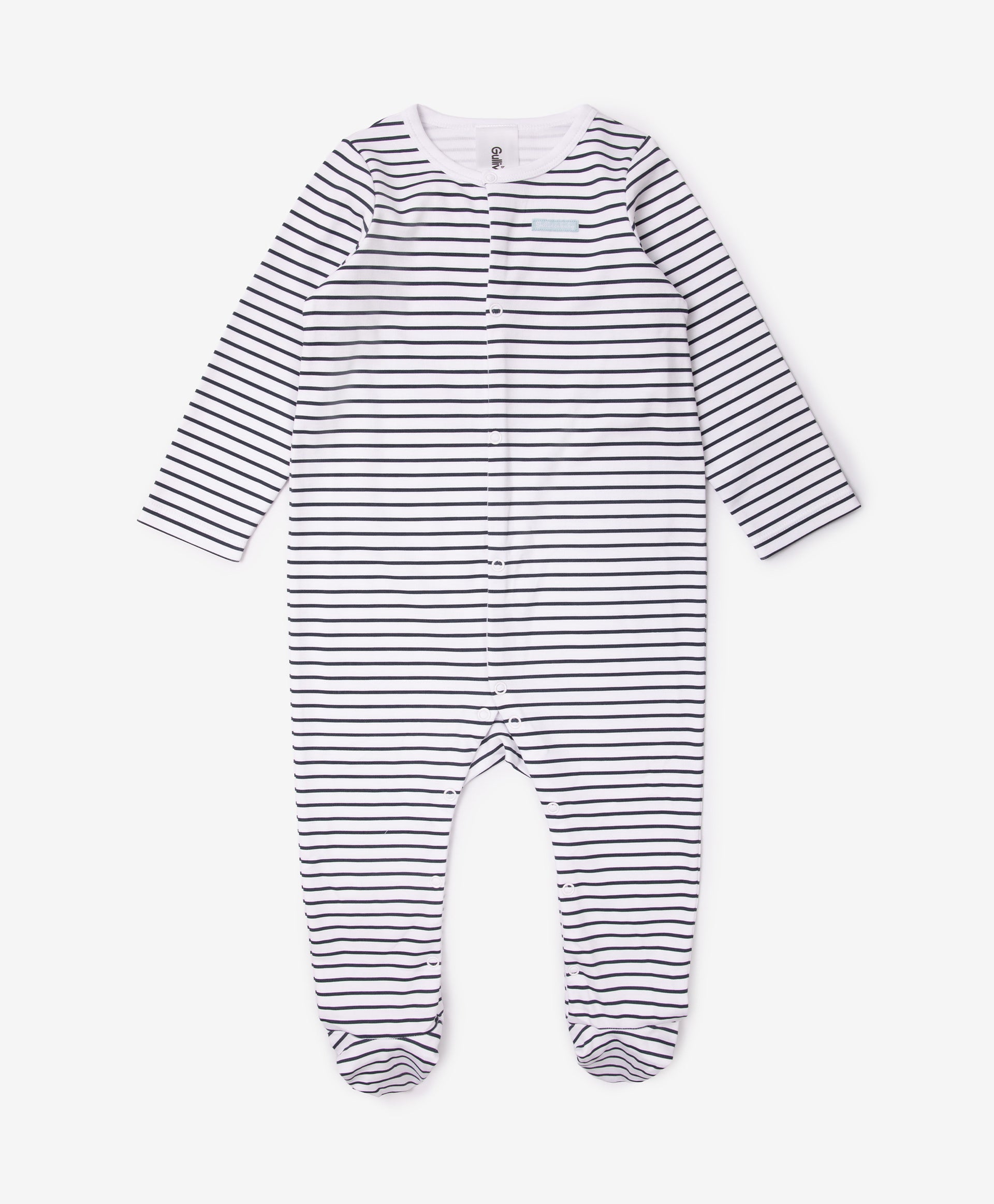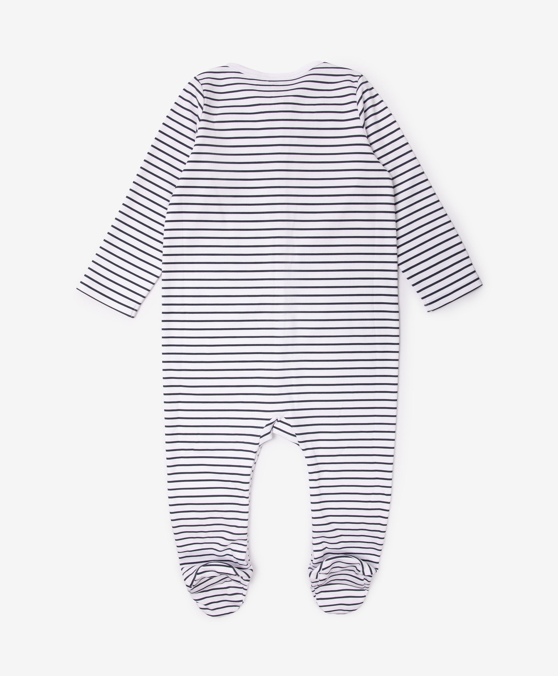 A convenient set of three soft cotton sleepsuits for boys, designed for maximum comfort and everyday wear. Each piece features practical snap fasteners for easy changing and gentle seams for delicate baby skin. Breathable cotton fabric ensures warmth and comfort during sleep or play. The set includes assorted colors and prints that add charm and variety to your little one’s wardrobe.