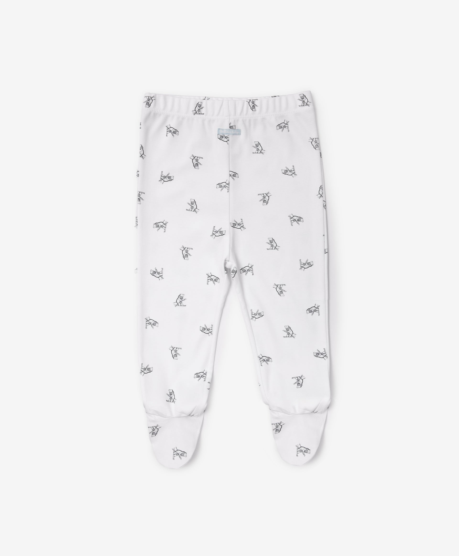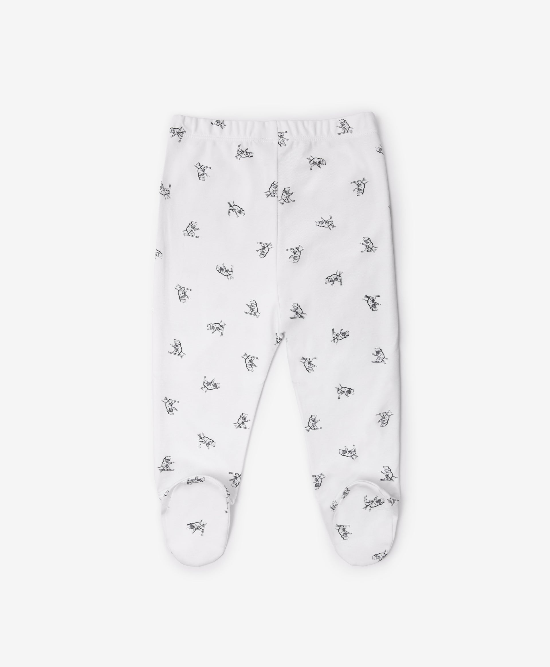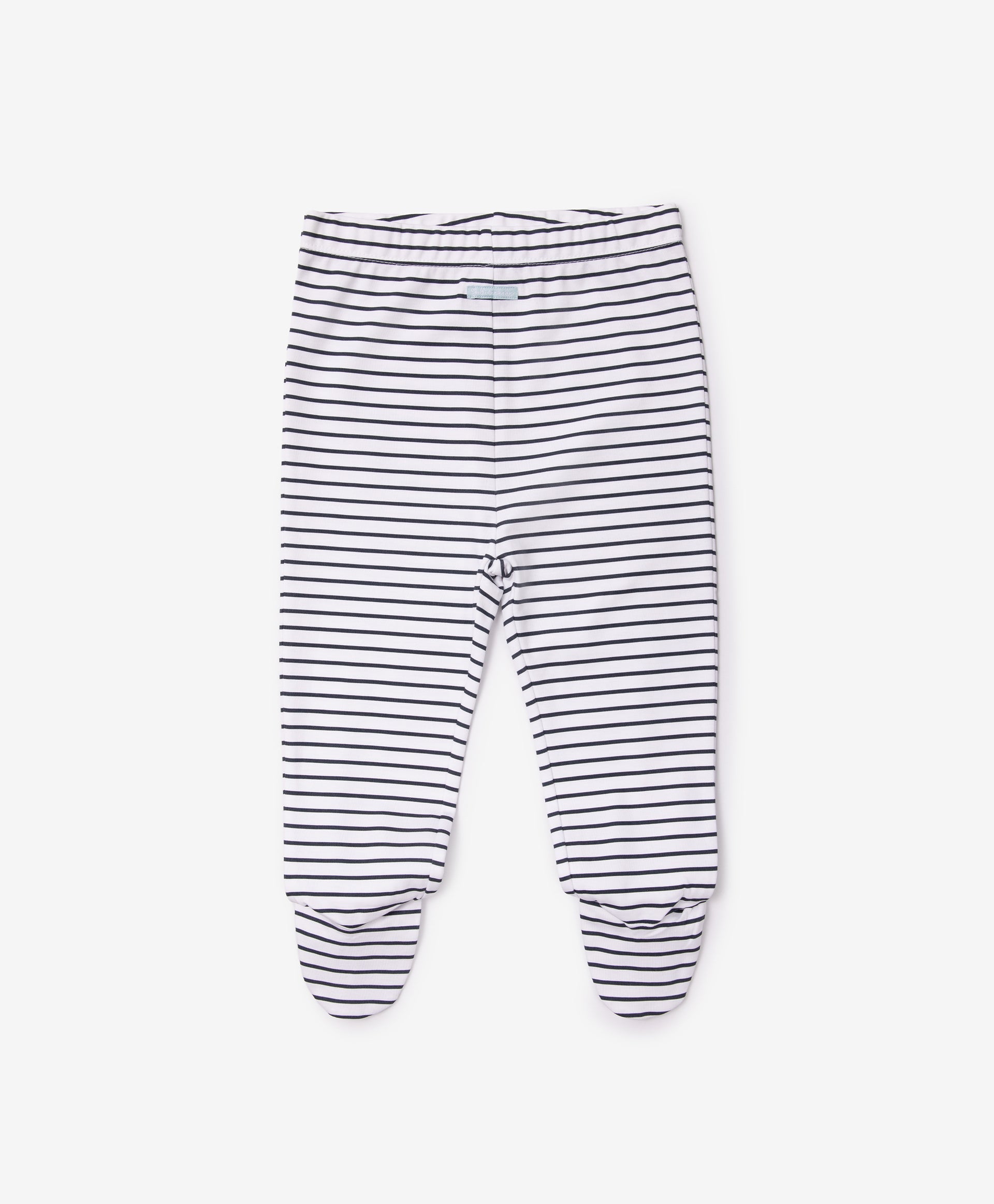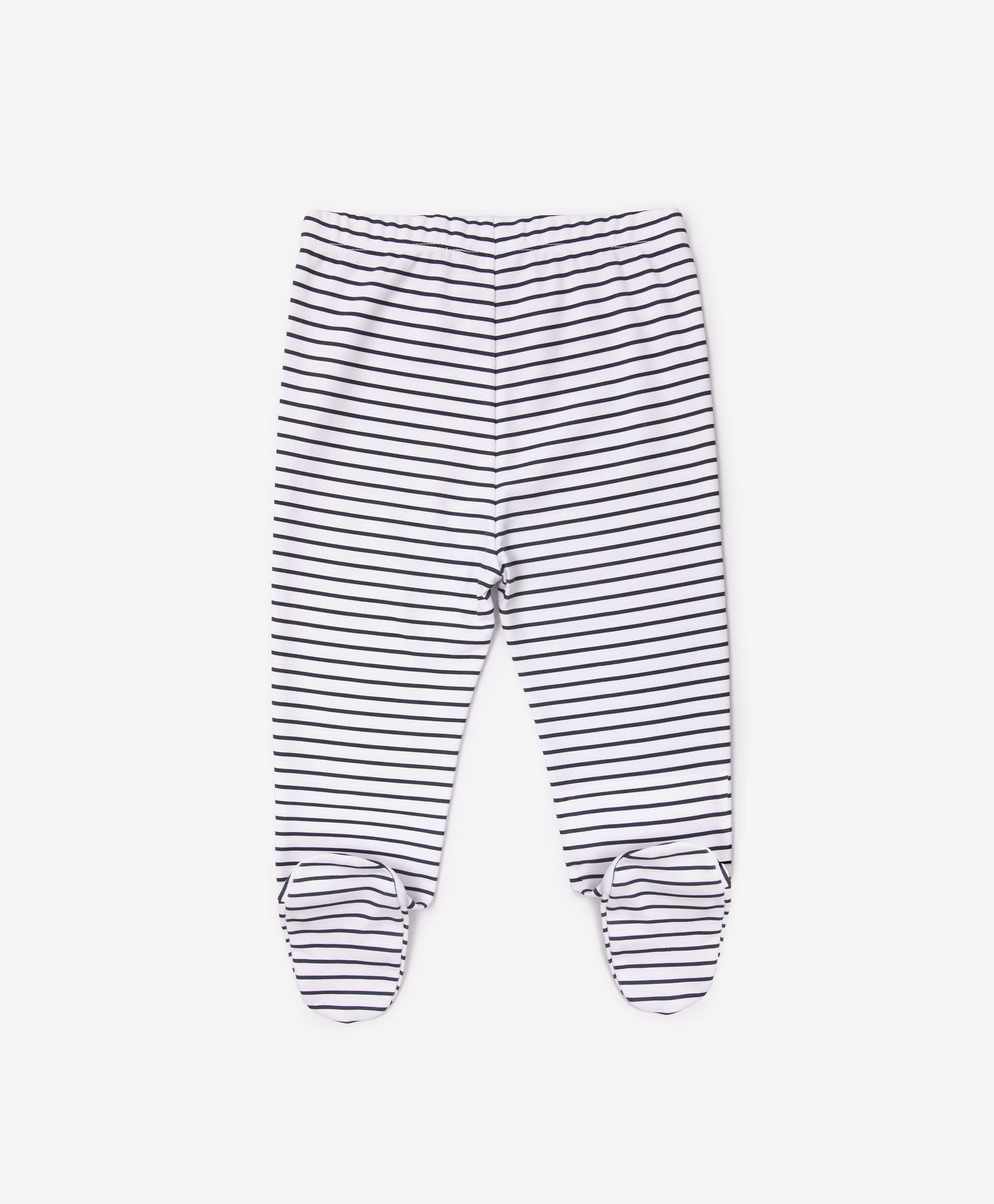 This set of three soft footed pants for boys is an essential choice for comfort and warmth in the first months of life. Made from premium natural cotton jersey, they are breathable, gentle on delicate skin, and ensure maximum comfort during active movements and sleep. The elastic waistband provides a secure yet comfortable fit, while the enclosed feet keep little toes cozy. Each pair features a different calm color or print, adding variety to your baby’s everyday wardrobe.